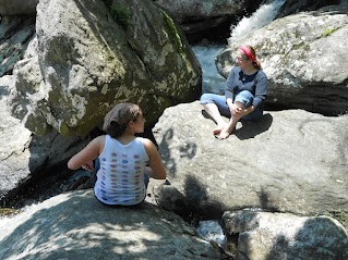 Eventually, we arrived at a beautiful waterfall called Cunningham Falls. The sign said that people should not attempt to climb the rocks around the falls. As you can see from the photo here, nobody heeded that warning.